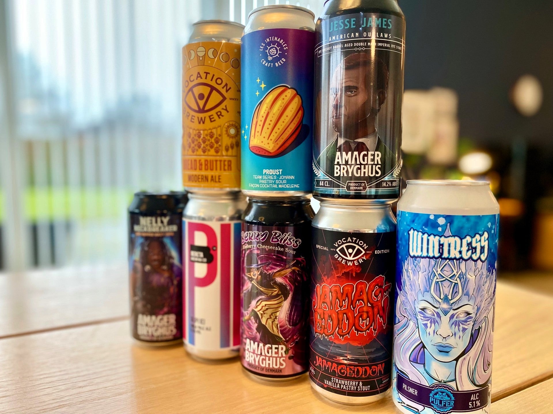 Vi smager os gennem et bredt udvalg af stilarter – fra frisk pilsner, over pale ale og IPA, videre til double IPA, sours og afslutningsvis et par fyldige stouts.